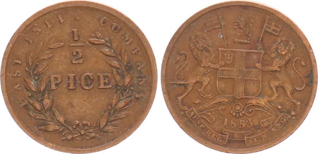Indien East India Company 1835 Indien 1 2 Pice East Indian Company 1853 Ss Vf Ma Shops