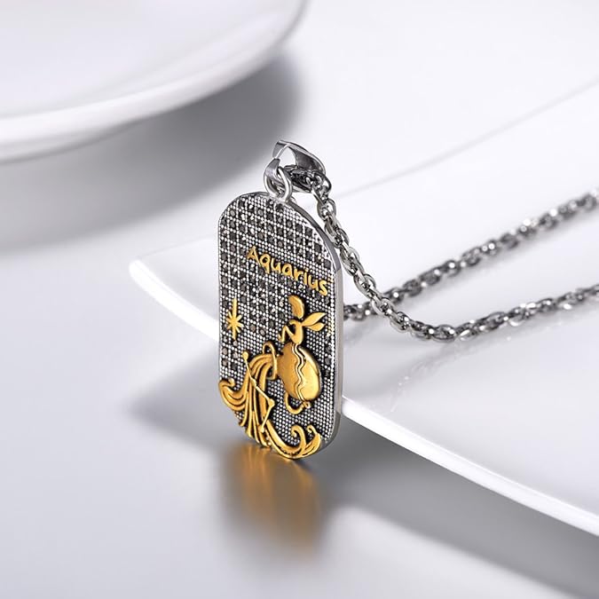 Prosteel Chaine Et Pendentif Plaque Militaire Avec Signe Astrologique Collier En Acier Plaque Or Jaune Serte De Strass Autrichien Noir Bijoux Bicolore Pour Homme Garcon Bijoux Homme